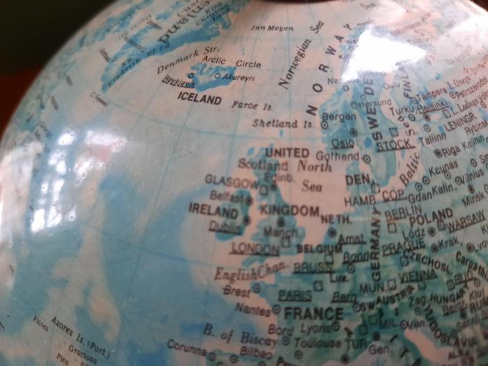 Shop>Home Decor>World Globe Circa 1980s World Globe Circa 1980s This is now a rare example. The globe is in great vintage condition showing only some very minor wear . The globe reflects the changes that have happened to country boarders since the day it was made. DimensionsHeight: 32cm Product NamePrice World Globe Circa 1980sDelivery: Shipping on this product is £10.95£45.00